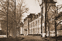 Tweehonderd jaar geleden, bij de opheffing van de vier Bossche schuttersgilden, werden hun eigendommen onteigend. Ook De Oude Schuts verloor haar bogaard aan de Sint-Jorisstraat, die zich uitstrekte tot aan de stadswallen. Op deze gronden werd in 1805 het Tuchthuis gebouwd, later gevolgd door het Huis van Bewaring. Aan het eind van de negentiende eeuw werden in gele baksteen het Paleis van Justitie en andere gerechtelijke gebouwen gerealiseerd. De stadswal zelf was tot 1874 militair terrein en dus verboden voor Bossche burgers. Op deze wallen groeiden bomen. Van overheidswege waren deze geplant, maar bij een vijandig beleg werden zij snel gekapt. De wortels van deze bomen zouden de grond bij elkaar houden, zodat ze de stadsmuren versterkten. Toch konden deze wortels niet voorkomen dat bij het Beleg van 1629 de stadmuur ter plekke zwaar beschadigd werd. Ze werd later gerestaureerd en versterkt met het Bastion Oranje. In 1874 verloor Den Bosch haar functie van vestingstad, werden de aarden wallen op de stadsmuren afgegraven. De stadspoorten verdwenen ook onder de slopershamer, de muren bleven gehandhaafd. Niet omdat men ze uit cultuur-historisch oogpunt wilde handhaven, maar omdat ze de opgehoogde binnenstad bijeen moesten houden. Dit hoogteverschil is nog aan de Spinhuiswal te zien: het natuurgebied Het Bossche Broek ligt enkele meters lager. Op de voormalige vestinggronden werden wegen aangelegd om het gebied te ontsluiten. Gedeeltelijk ontstonden er aan deze wallen nieuwe huizen omdat de woningnood groot was in de stad (Noordwal, Westwal), bij bijvoorbeeld de Hekellaan werd een groot wandelgebied aangelegd en aan de Spinhuiswal werd in die tijd het gele Paleis van Justitie gebouwd. Door sommigen later 'een monstrum van architectuur' genoemd. De straat kreeg op 27 januari 1897 van de gemeenteraad haar officiële naam: Spinhuiswal, een naam die kennelijk door de Bosschenaren al geruime tijd officieus werd gebruikt. Aan de Spinhuiswal lag eigenlijk slechts één oud gebouw: het uit het begin van de zestiende eeuw daterende Refugiehuis van de Leuvense abdij Sint-Geertrui. Dit monument was vlak vóór de Tweede Wereldoorlog gerestaureerd. Het overleefde ook deze oorlog. Anders verging het het Paleis van Justitie. In oktober 1944 rukten de geallieerden op, ondermeer via de Spinhuiswal. Omdat men vermoedde dat er zich Duitsers in het gerechtsgebouw bevonden, werd er geschoten. Daarbij raakte het Paleis van Justitie in brand en werd verwoest. In maart 1949 werden de restanten van de voorgevel afgebroken. Op hetzelfde oppervlak, maar één verdieping hoger, werd een nieuw gerechtsgebouw gerealiseerd, dat in 1951 in gebruik werd genomen. Dit gebouw viel (en valt) bij velen in de smaak. Er werd bij de opening zelfs gesuggereerd de naam Spinhuiswal te vervangen door Paleissingel. Nog geen halve eeuw zal het gebouw bij Justitie in gebruik blijven. Binnenkort verhuizen de gerechtelijke diensten naar het nieuwe Paleis van Justitie achter het NS-station. het grote pand aan de Spinhuiswal komt dan leeg. Wat zal de nieuwe bestemming zijn? |