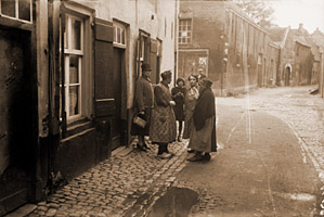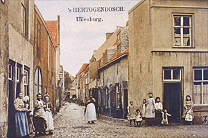 Het is leuk wonen in de Uilenburg: fraai gerestaureerde huizen en een schone Binnendieze zorgen voor een verhoging van het woongenot. Maar een eeuw geleden was dat zeker niet het geval. Er zijn wel sfeervolle foto's over het leven in deze Bossche woonwijk, maar achter de ramen en deuren zag het er niet allemaal even fraai uit. Evenmin op straat. Bosschenaren waren in de vorige eeuw zelf verantwoordelijk voor het vegen van de stoepen en klinkerpaden voor de huizen, evenals voor een deel van de straat. Maar van stadswege was daar weinig controle op. Vooral de dichtbevolkte wijken waren toonbeelden van vervuiling. Het huisvuil werd dikwijls gewoon op straat gedeponeerd (of in de Binnendieze) en men keek maar wat ermee gebeurde. Over de Uilenburg schreef een Bosschenaar in 1867: „Geen tien voetstappen kan men doen, zonder een vuilnishoop te ontmoeten. Het vuilnis zou dagelijks weggehaald moeten worden, maar meestal gebeurde dat maar een keer in de week. De uitwaseming ervan moest, vooral in de zomer, hoogst nadelig zijn voor de gezondheid van deze dichtbevolkte buurt.” De stedelijke gezondheidscommissie pleitte eveneens voor frisse lucht in de dichtbevolkte wijken. Maar ook in de woningen was het verre van ideaal. Apotheker Klijn constateerde dat de huizen in de Uilenburg niet vodeden aan de eisen van hygiëne. De meesten konden alleen door de deur gelucht worden en ontvingen via een raam wat daglicht. De aanwezigheid van stallen in de wijk zorgde eveneens voor bedorven lucht. HondenHet bleef lang slecht in de Uilenburg. Nog in juli 1911 constateerde de SDAP in de gemeenteraad over deze huizen: „De heeren - van de Gemeenteraad - zouden deze krotten voor hunne honden nog te slecht achten.” Drie jaar later pas werden er vijf woningen in de Uilenburg onbewoonbaar verklaard.Deze slechte huisvesting zorgde voor een hoog sterftecijfer onder de Bossche zuigelingen, vooral in dichtbevolkte wijken. Ook ziekten sloegen genadeloos toe. In 1866 heerste er een cholera-epidemie in de stad die 299 doden eiste, In 1870 werd Den Bosch getroffen door een pokkenepidemie, die vooral slachtoffers maakte onder de arbeidende klassen en de behoeftigen. Er waren 388 doden te betreuren. Natuurlijk werd er niet altijd actieloos toegekeken. Toen de stad aan het eind van de vorige eeuw een eigen drinkwaterleiding kreeg, werden bij de komst ervan enkele buurten voorzien van een openbare standpijp voor kosteloos gebruik. Voordien was men aangewezen op niet al te fris pompwater of betrok men zelfs Diezewater voor de consumptie. GerestaureerdDie tijd is definitief voorbij. Vanaf het Monumentenjaar 1975 is er druk gerestaureerd in de Uilenburg. Pandjes werden samengevoegd en daar waar vroeger kamerwoningen waren, werd nu één huis gecreëerd. De Klomp bestond omstreeks de eeuwwisseling uit een complex van zes huisjes: nu is het één pand. Natuurlijk kostte deze restauratie geld; ondanks subsidies zelfs veel geld. Dat betekende dat de oorspronkelijke bewoners niet meer terug konden keren naar 'hun wijk'. Zij vonden elders binnen de gemeentegrenzen onderdak. In de gerestaureerde monumenten kwamen kapitaalkrachtige bewoners, luxere winkels of restaurants.En Bosschenaren die zich een gerestaureerd pand niet kunnen veroorloven, kunnen toch genieten van het schone in deze wijk en er eventueel een restarant bezoeken. |