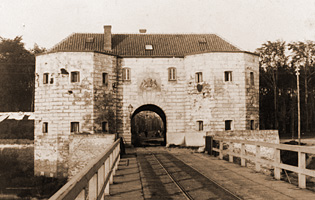 In de muur naast de daar gelegen flats zien we een herdenkingssteen zitten, een door burgemeester mr. F. van Lanschot in 1938 aangebrachte herinnering aan de voormalige Vughterpoort. Bron: Rondom de Vughterdriehoek |