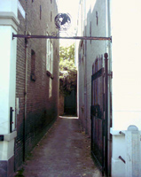 Tussen de grote panden Peperstraat 9 en 11/13 bevindt zich een smal steegje. Het strekt zich ongeveer dertig meter tussen hoge muren uit, met een rechte bocht naar links en een haakse naar rechts. De naam van het steegje, Achter de Wereld, wordt toegeschreven aan het pand De Wereld aan de Verwersstraat 104-104A. In dit gebouw was begin 18e eeuw een bierhuis met brouwketel gevestigd. Het complex had hier tevens een uitgang in de Verwersstraat. Maar ook het pand Peperstraat 15, waar het steegje schuin achter ligt, heet De Wereld. Aan het einde van het steegje staan vier oorspronkelijke cameren onder één dak, gebouwd rond 1800. De vier woninkjes hadden een begane grond van 3,90 bij 4,60 meter en een zoldertje met borstwering, ze hebben ooit behoord tot het Ulemanshofje voor oude en armlastige vrouwen, later ook Het Brants Gasthuis genoemd. In de tachtiger jaren van de vorige eeuw waren de huisjes bouwvallen, in 1986 zijn de pandjes grondig gerestaureerd. Een behield zijn oorspronkelijke grootte. De drie andere zijn tot één woning verbouwd. Uiterlijk lijken er echter nog steeds vier huisjes naast elkaar te staan, met vier voordeuren, vier ramen en vier dakkapellen. De tuinmuur is twee meter hoog en honderden jaren oud. De huisnummering wijkt nogal af: de samengevoegde woning heeft als officiële adres Achter de Wereld 3-5-7, het buurhuis heeft nummer 6. Hoewel het een openbare weg is, is Achter de Wereld afgesloten met opengewerkt, ijzeren sierhekwerk, waarin een globe verwerkt is. |